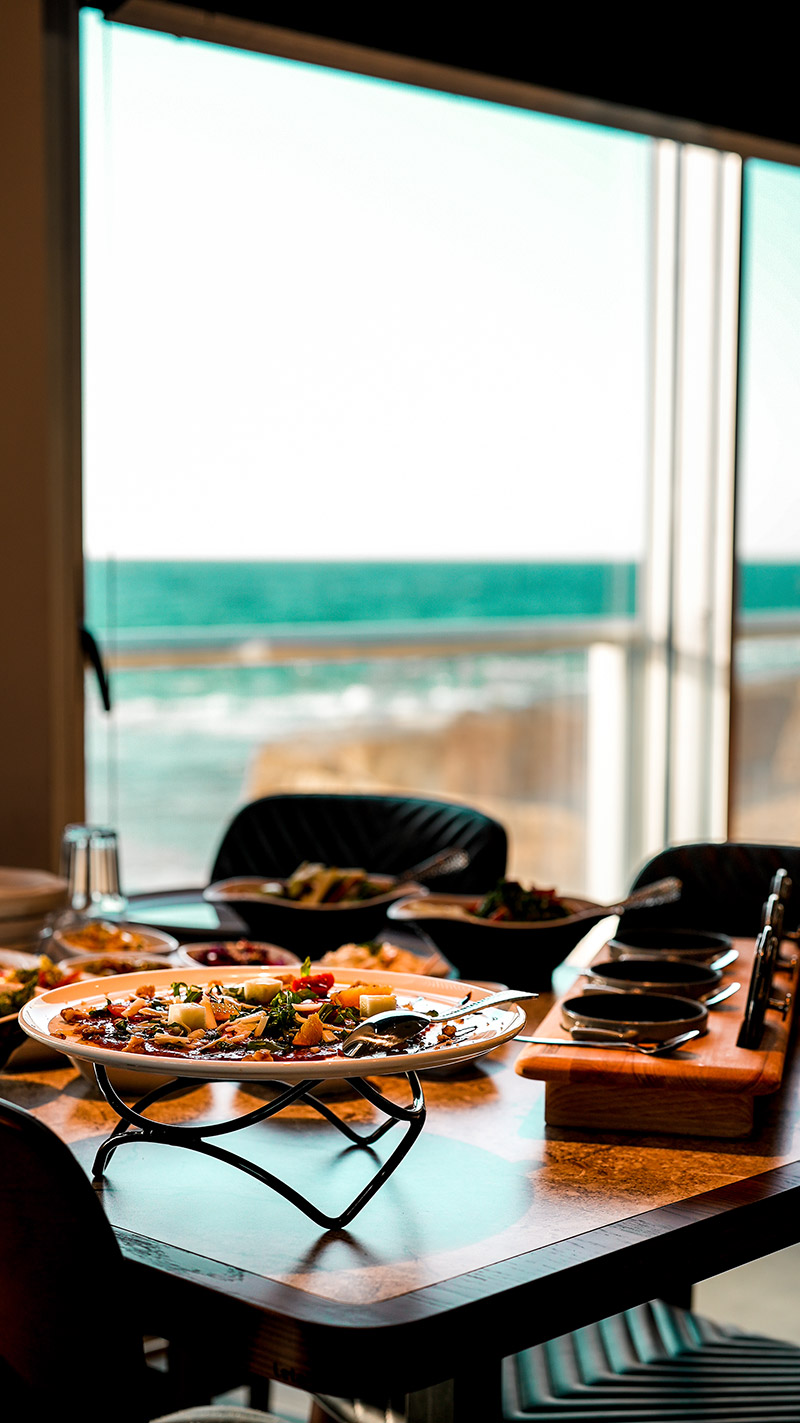 לצד נוף עוצר הנשימה בעכו העתיקה בין הסלעים והקריצה של אורות חיפה ישנו תפריט המשלב מנות ים תיכוניות עדכניות לצד אירופה הקלאסית.