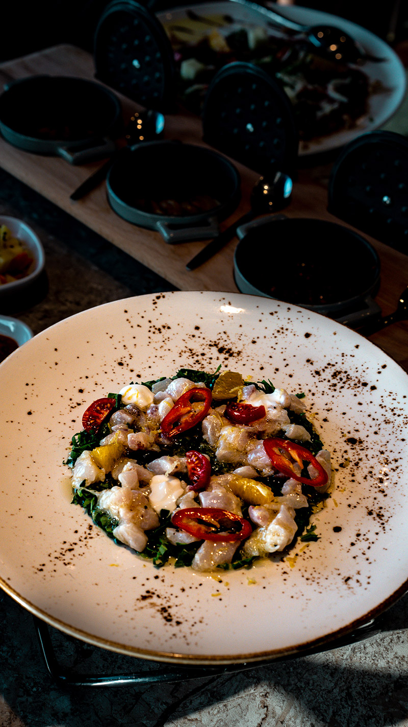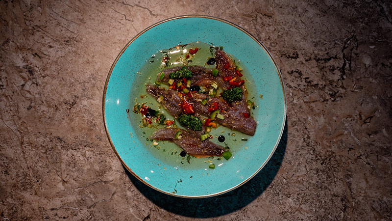 חומרי הגלם הינם חומרי גלם ים תיכוניים טיפוסיים באווירת הבלאדי וים התיכון ובדגש על מה שנותן הים בכל עונה ויום לצד טכניקות ההכנה, הרטבים וההגשה שמשדרים אירופה הקלאסית.