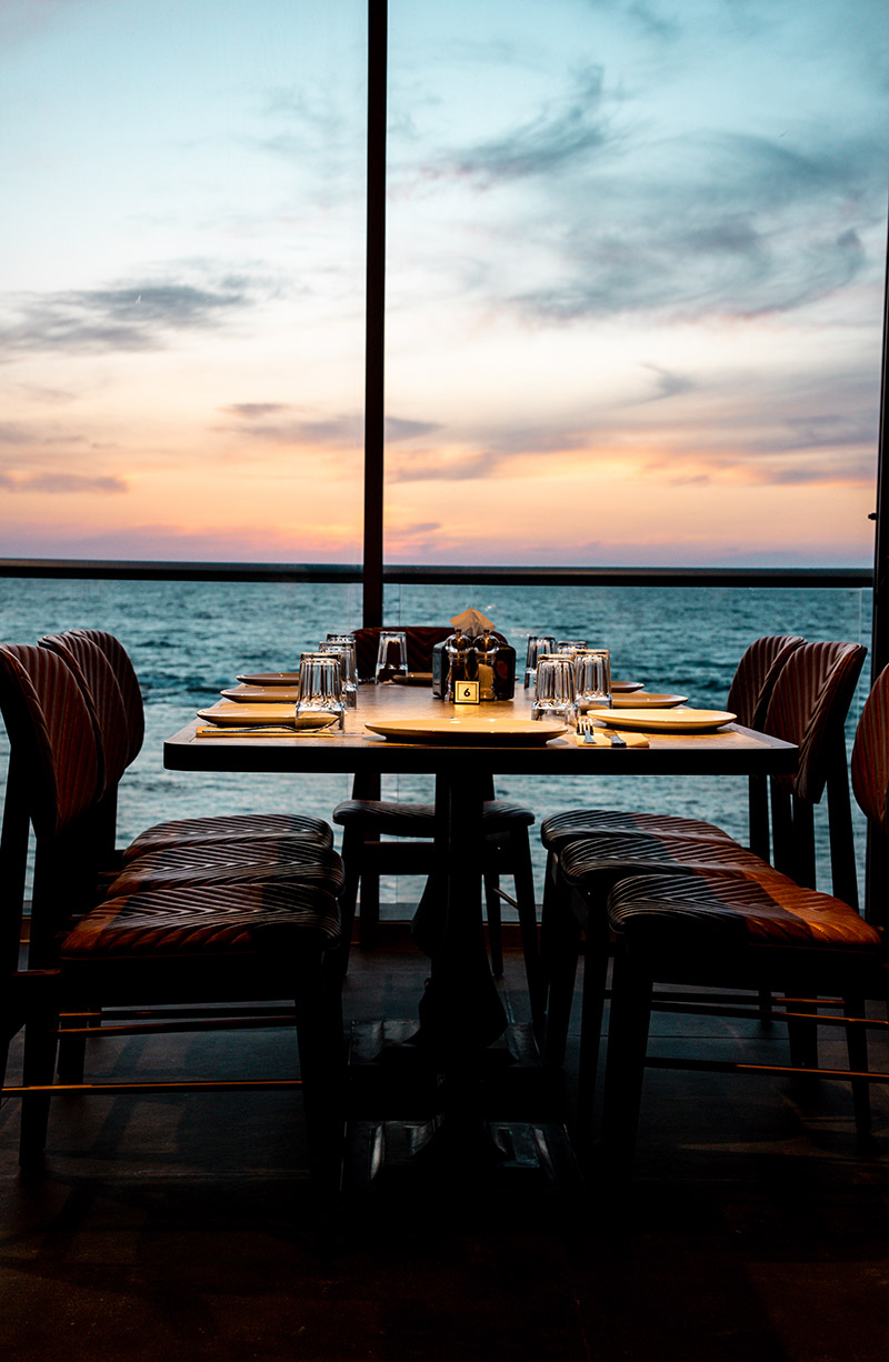חלל המסעדה נבנה ועוצב מתוך הרעיון שבו הסועדים יחוו את הים במיטבו ובנוי כאוניה על המים וכך ניתן להשקיף על נוף עוצר נשימה והאווירה פסטורלית המקיפה את המסעדה של גלים ונוף עם מבט קורץ על אורות חיפה הרי הכרמל.